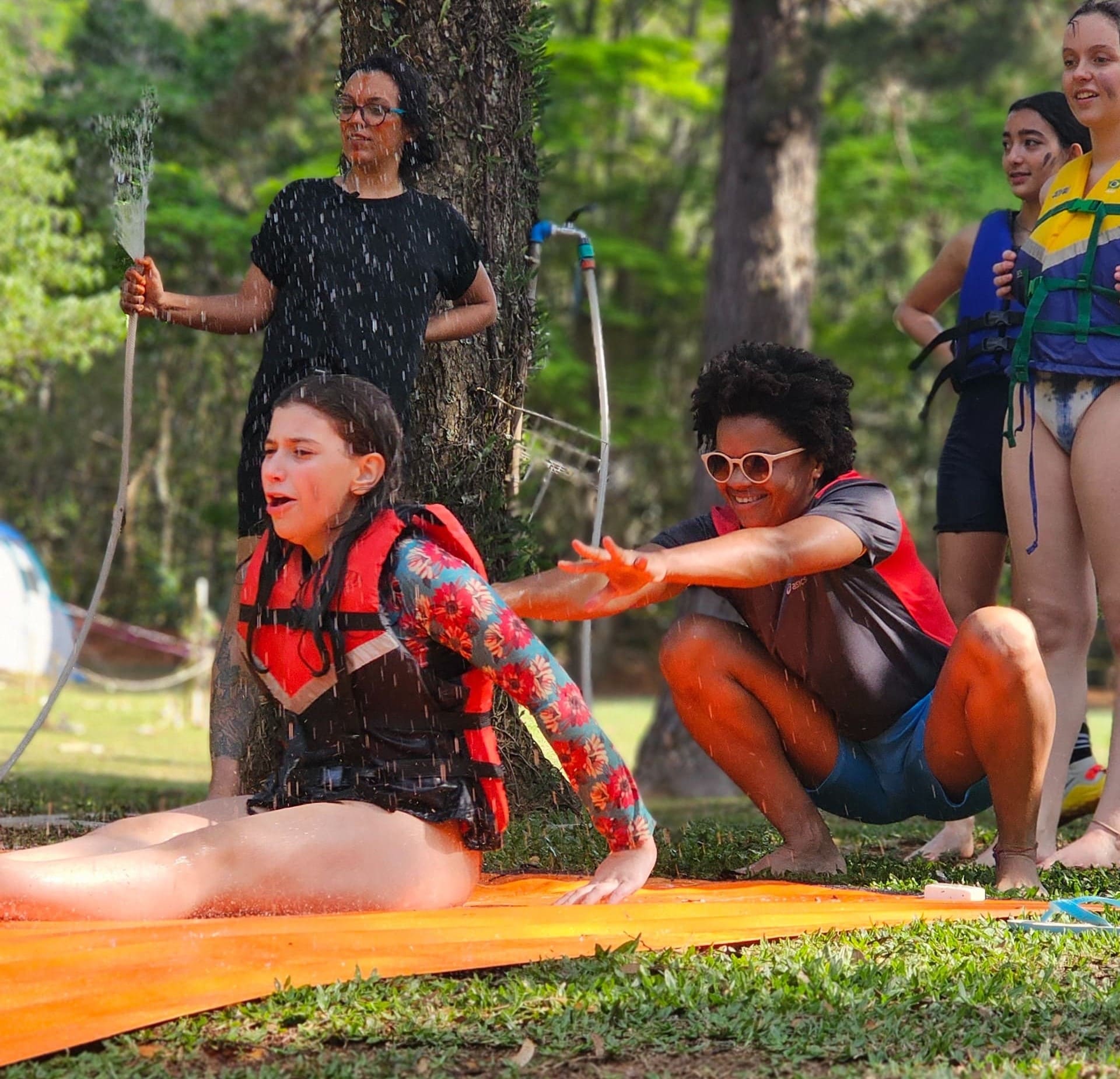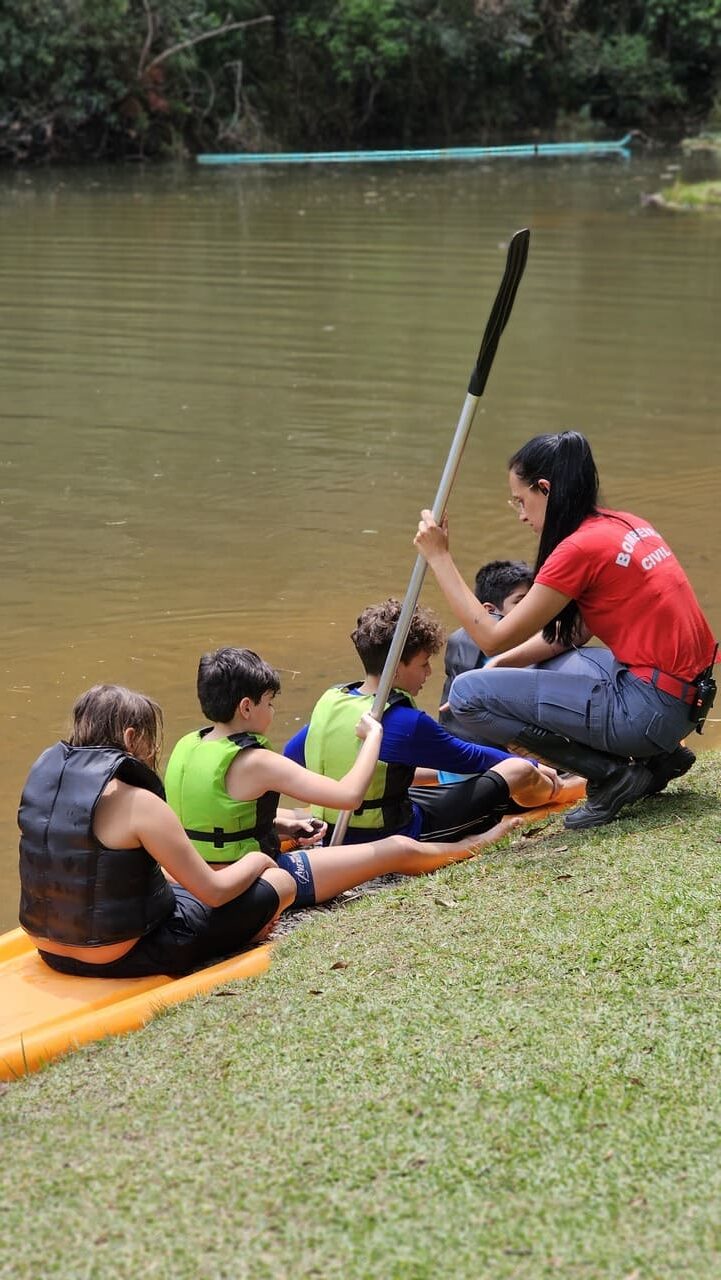Equipe liderada por Bombeira-chefe, certificada pelo Corpo de Bombeiros Civil de São Paulo. Oferecemos ambulância, enfermaria (primeiros socorros e pronto atendimento a acidentes), além de equipamentos completos para as vivências (coletes salva-vidas no lago, EPIs no Voador Aventura).