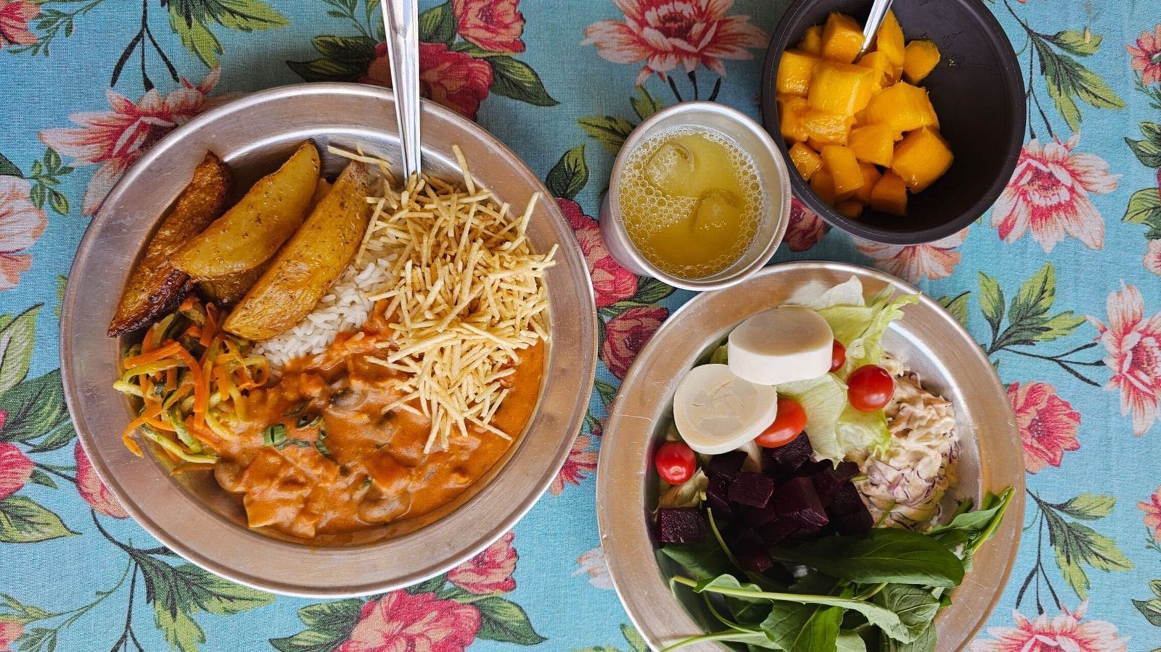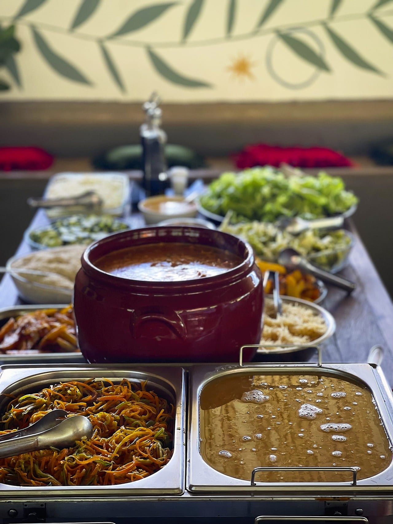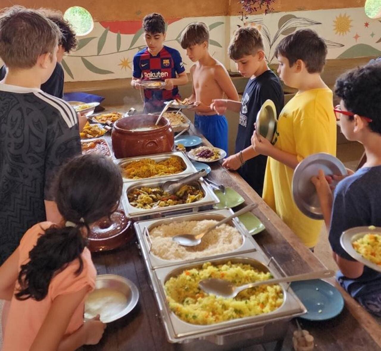 Alimentação vegetariana, um convite a experimentar novos sabores. Menu que surpreende. O sistema é pensão completa: café, almoço, lanche e jantar. Sucos naturais e frutas da estação à vontade.